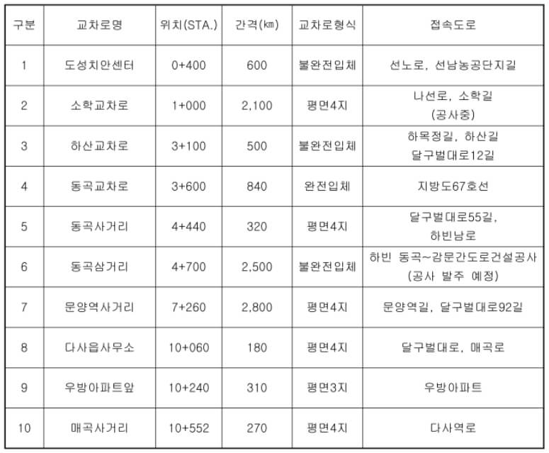 2. 성주 선남 ~ 대구 다사 국도건설사업 교차로 계획