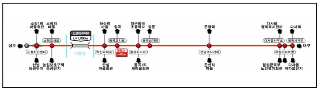 2) 종점 : 대구광역시 달성군 다사읍 매곡리