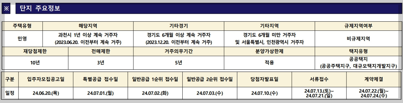 - 일반공급 2순위 접수일: 2024년 7월 3일(수)