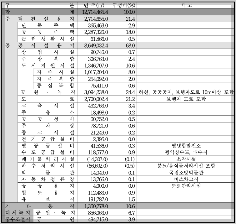 1) 광명 : 8,112,472.7㎡(63.8%)