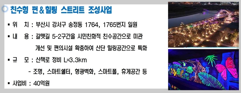 - 사업구역: 명지녹산국가산단 내 갈맷길 5-2구간, 녹산산업대로, 녹산산단321로~322로 일원