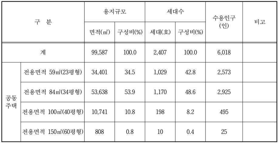 - 분양주택 : 952세대 (2,380인)