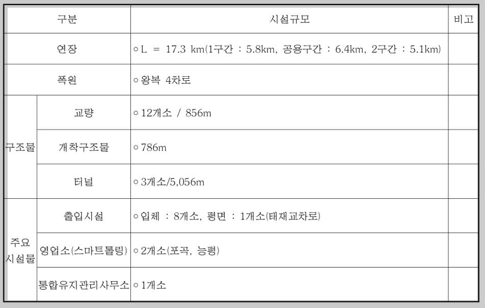 3. 총연장 : 17.3km (1구간 5.8km, 공용구간 6.4km, 2구간 5.1km)