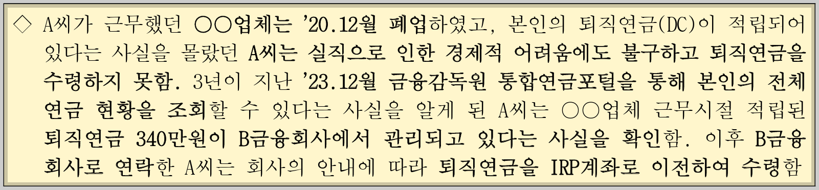 3. 폐업기업 근로자 미청구 퇴직연금 되찾은 사례