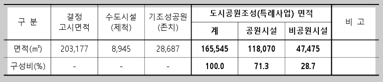 공원시설 118,070㎡, 비공원시설 47,475㎡