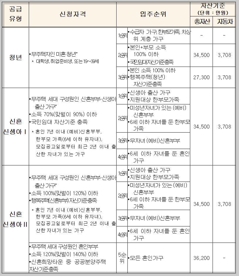 1. 2024년 청년, 신혼·신생아 가구 매입임대주택 입주 자격